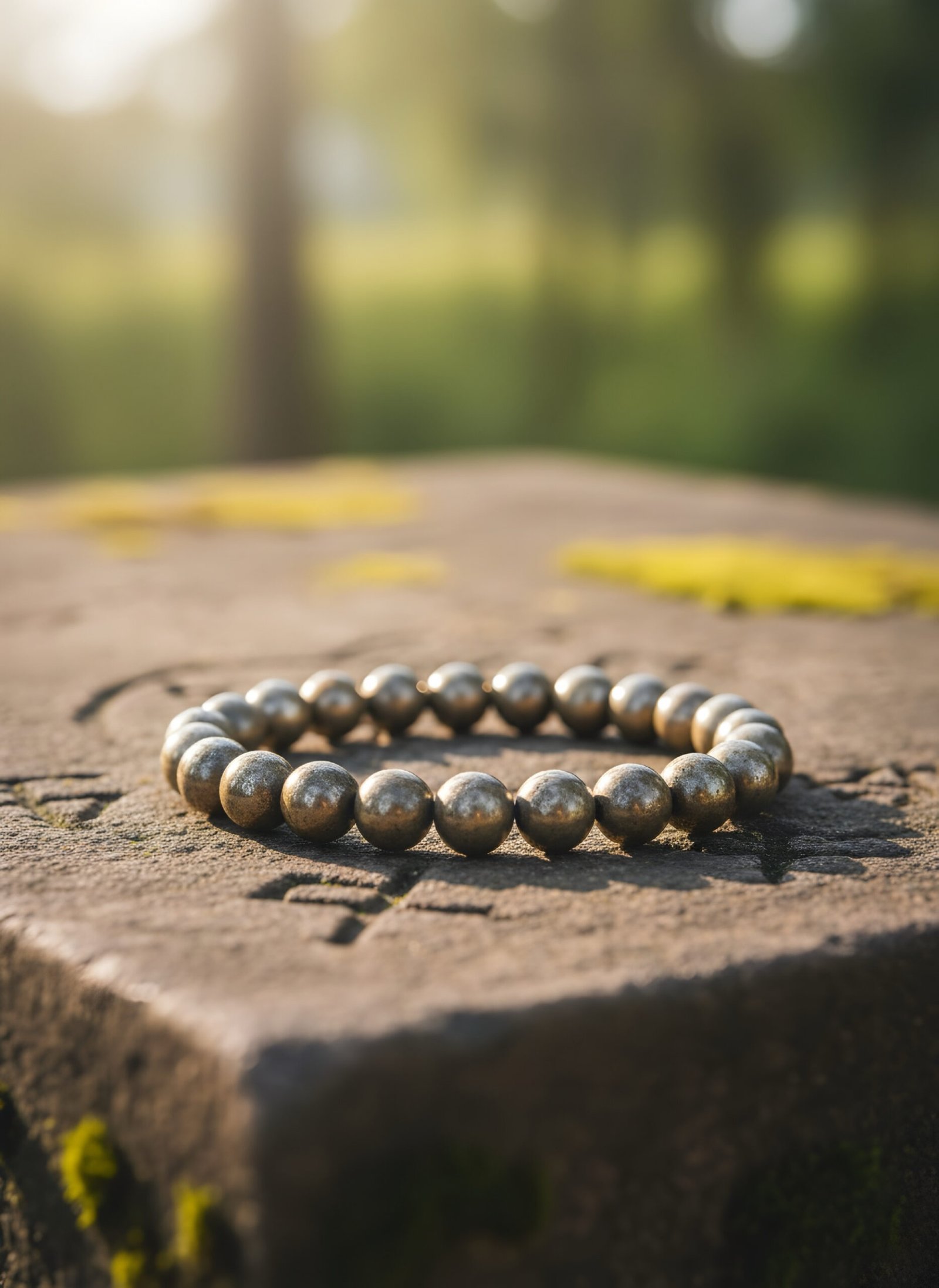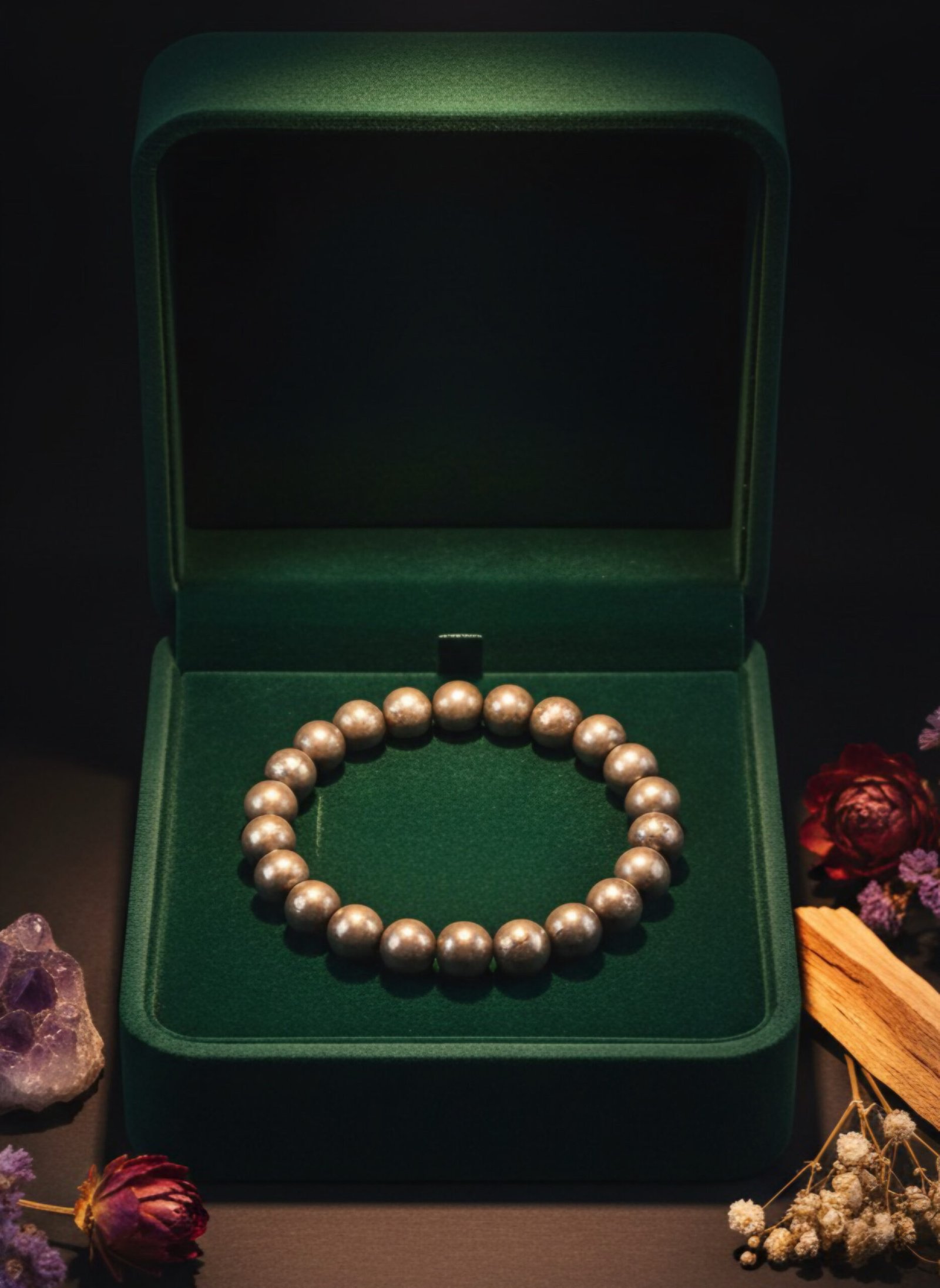 Premium AAA Pyrite Bracelet (8mm) made with 100% natural, lab-certified Pyrite beads. Designed for everyday wear, this unisex stretch bracelet is believed to attract wealth, boost confidence, enhance motivation, and protect against negative energy.