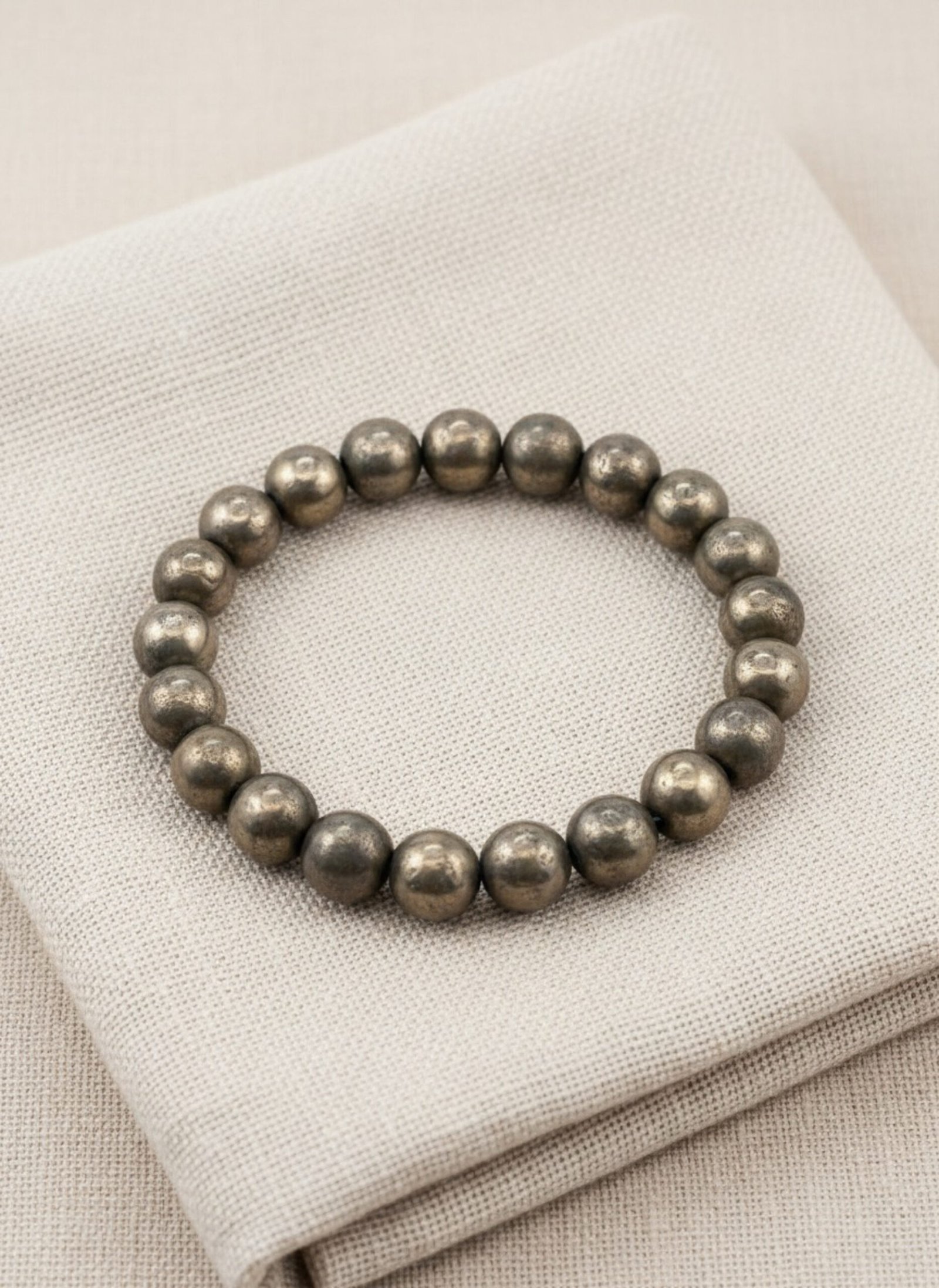 AAA Grade 8mm Pyrite Bracelet | Natural Stone Beaded Bracelet for Men & Women