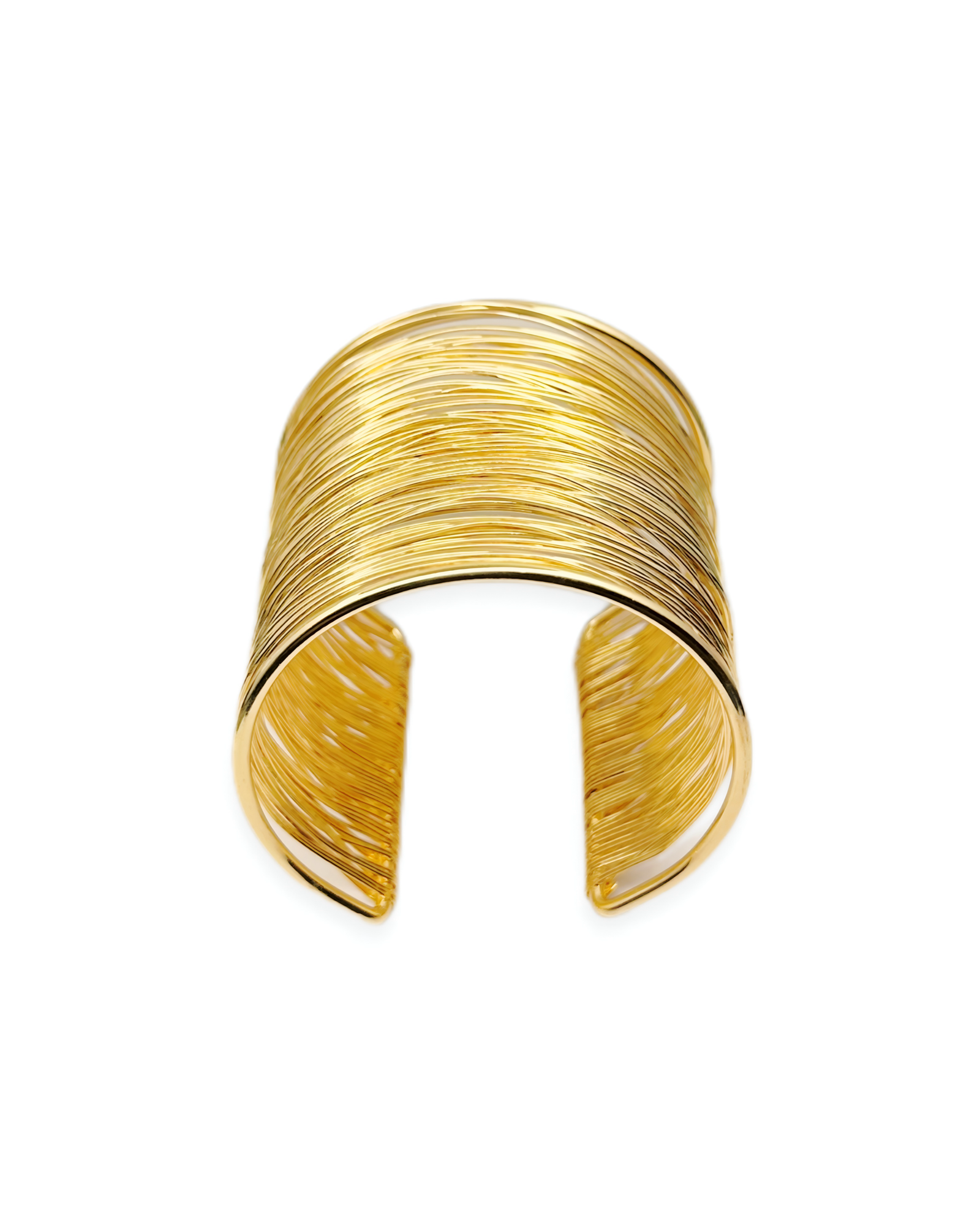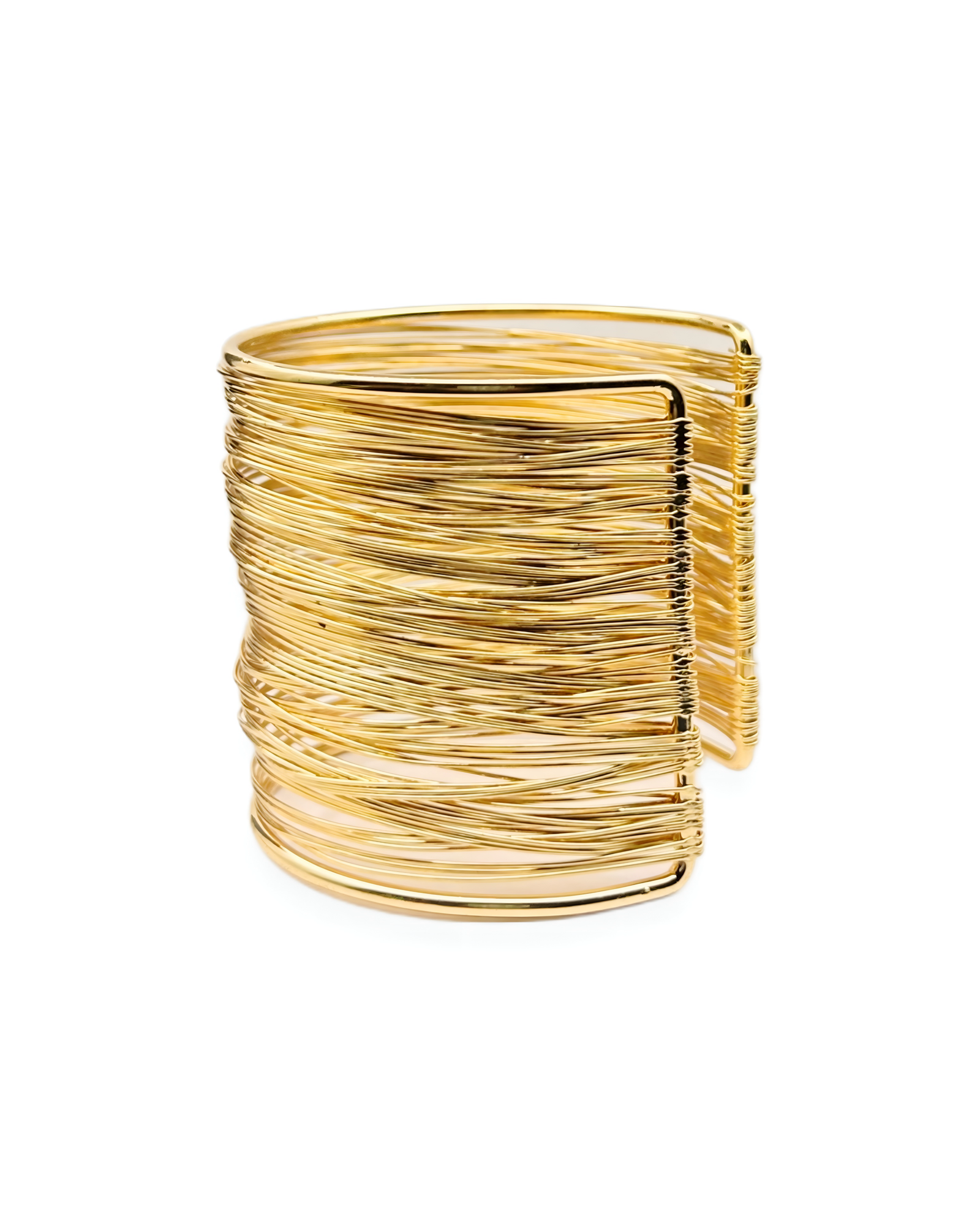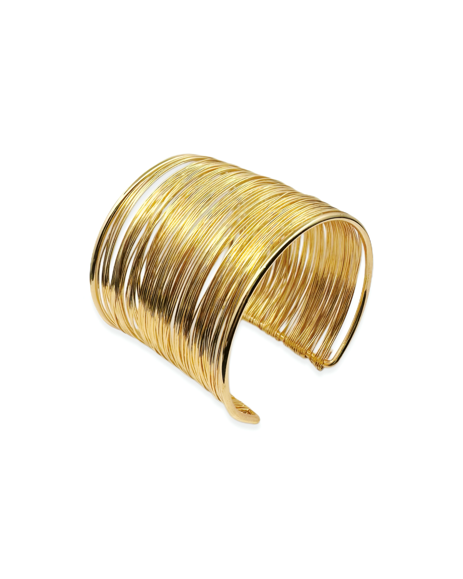 Statement gold-tone wire cuff bracelet with multiple layered strands, giving a wide bangle look in a lightweight, comfortable design.
