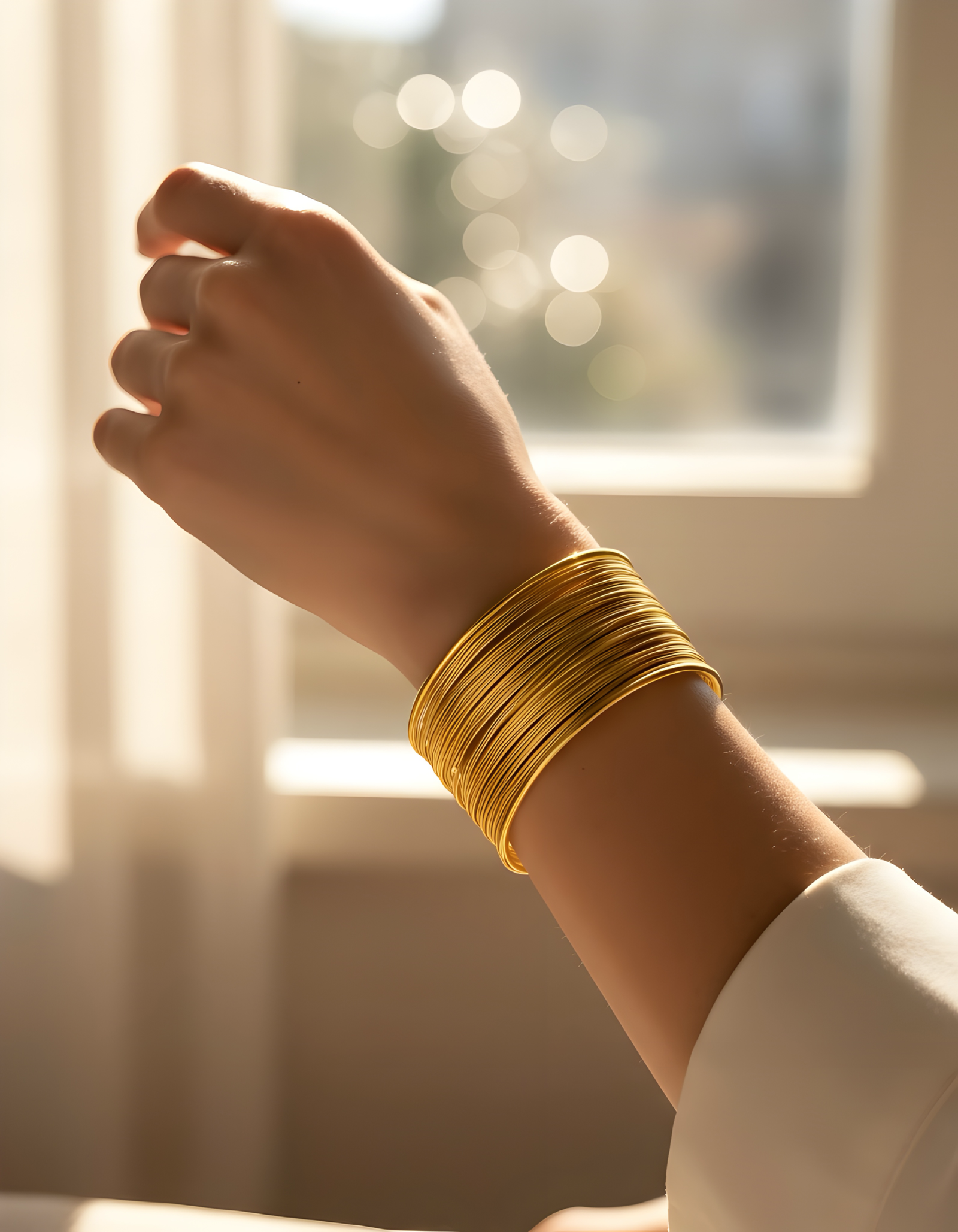 Gold Wire Cuff Bracelet for Women – Wide Layered Bangle Fashion Jewelry