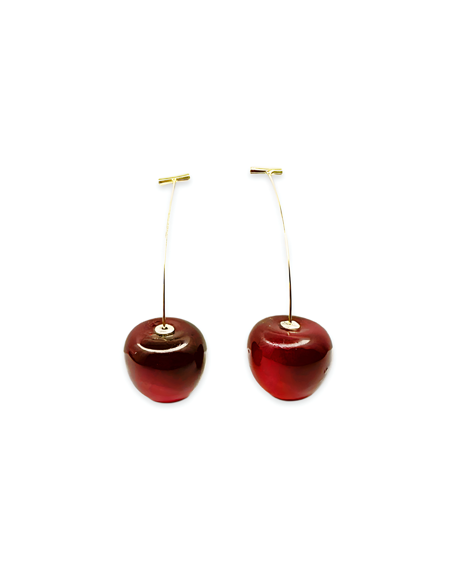 Material: Smooth resin cherries with gold-tone alloy hooks; ideal as fashion jewelry for everyday styling.
