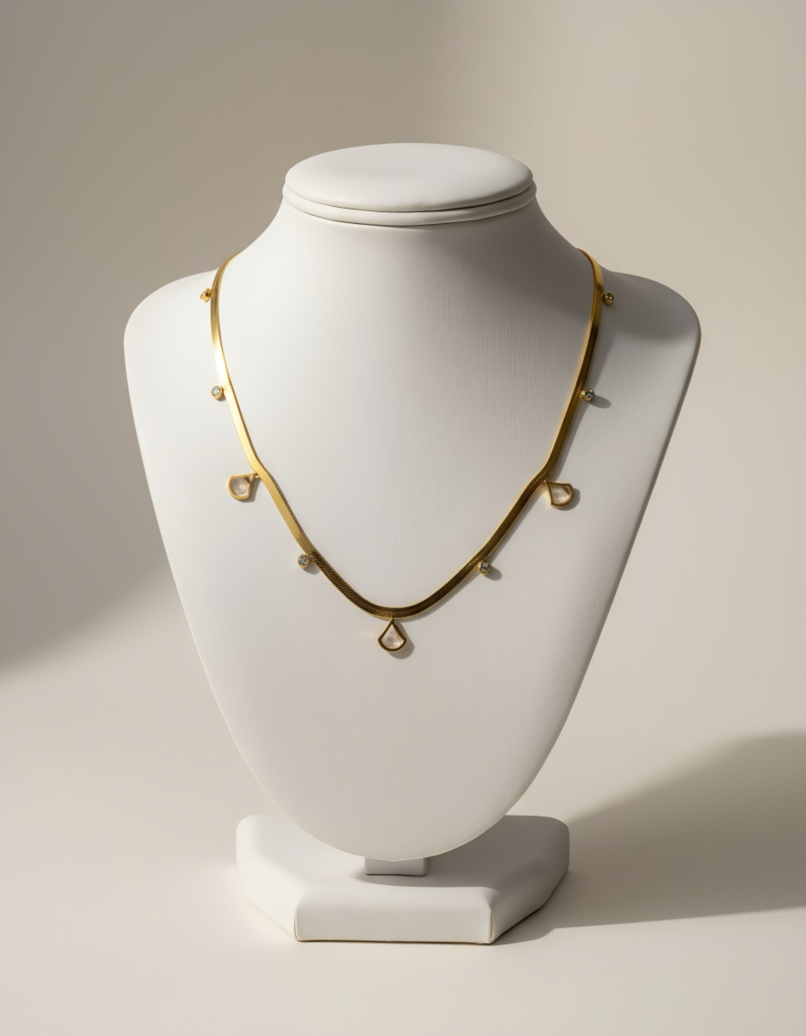 A refined gold-tone necklace adorned with delicate pearl drops and subtle crystal accents. Designed for effortless elegance, perfect for everyday luxury and special moments alike.